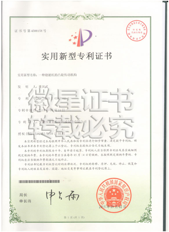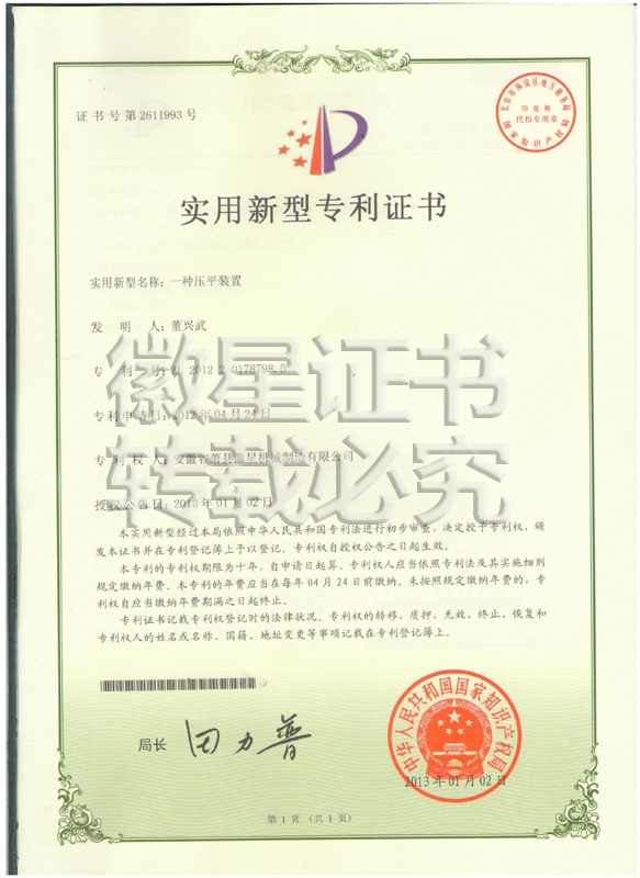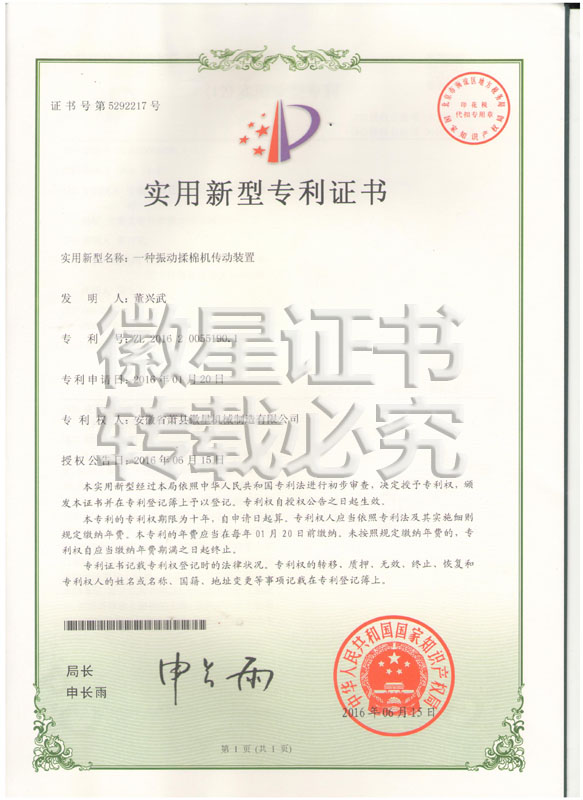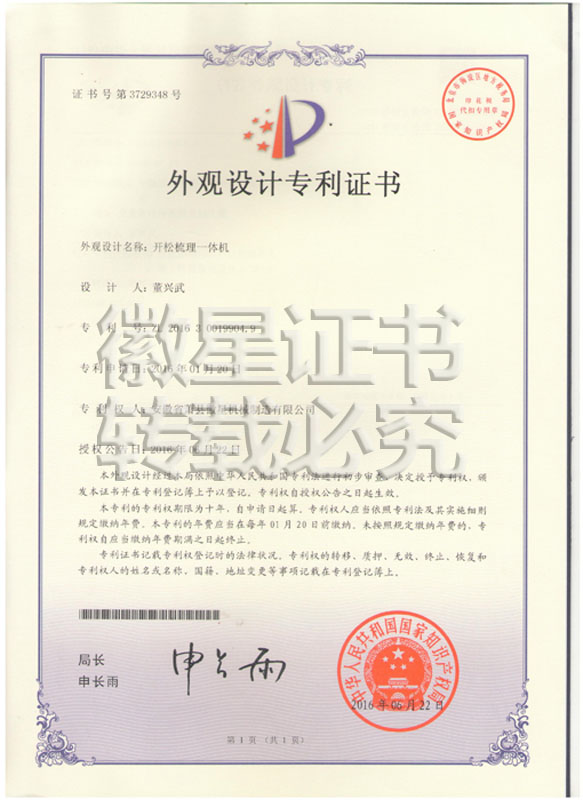 徽星人經(jīng)過20年的努力奮斗,經(jīng)過7000多個日日夜夜,在董興武先生的帶領(lǐng)下,打造優(yōu)質(zhì)品牌。徽星現(xiàn)已榮獲20多項國家專利,保證機器的質(zhì)量,認客戶朋友們用上了放心機器!